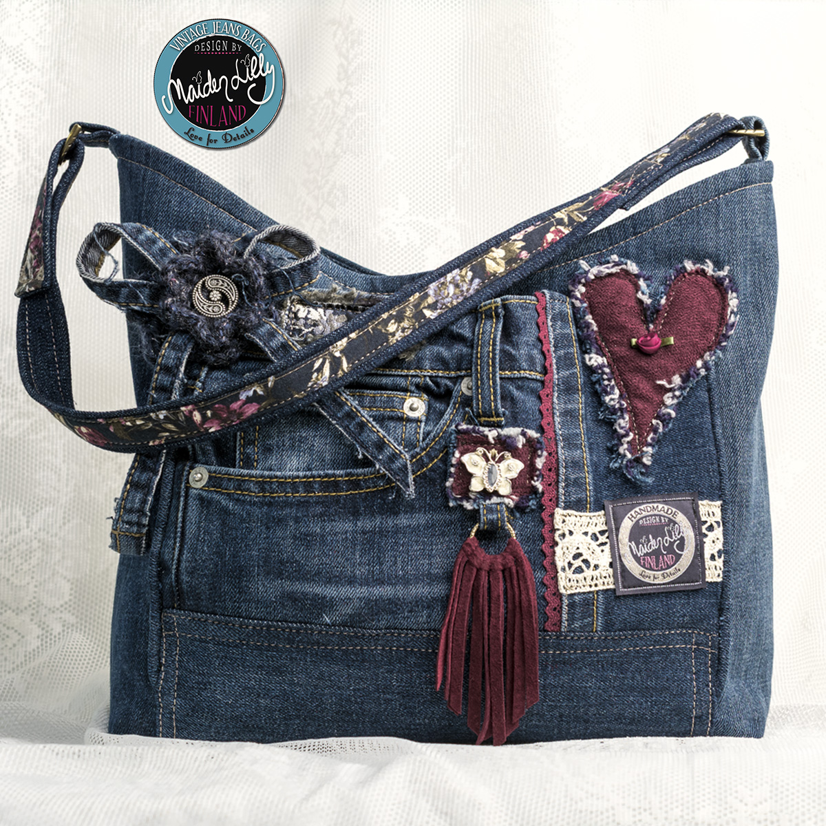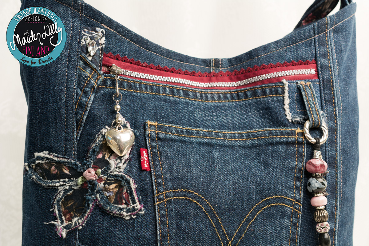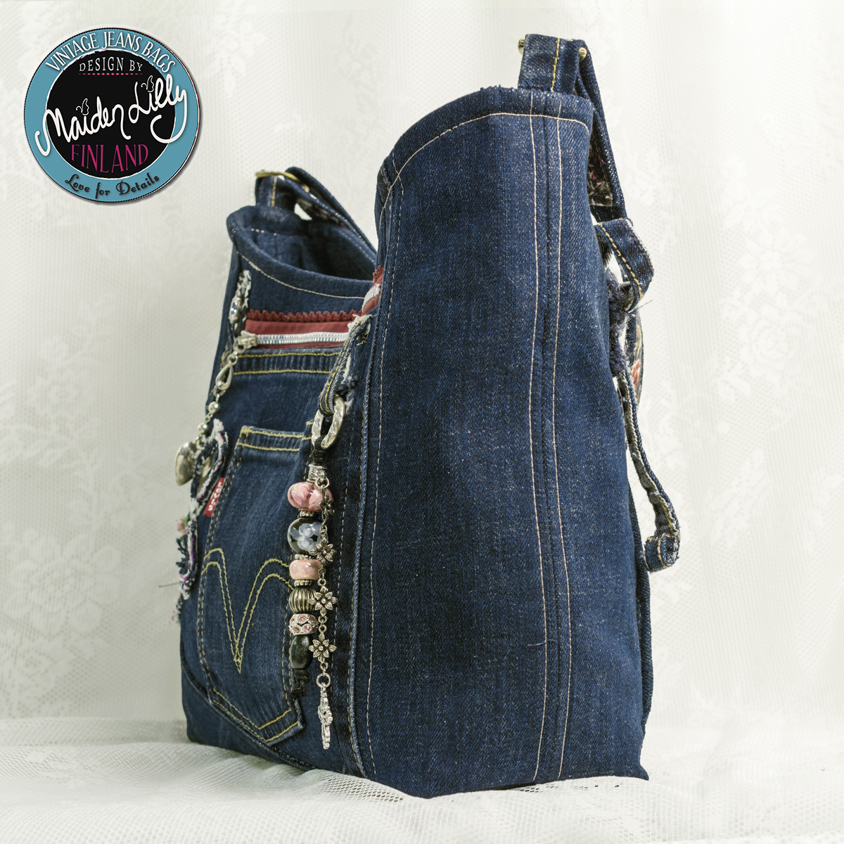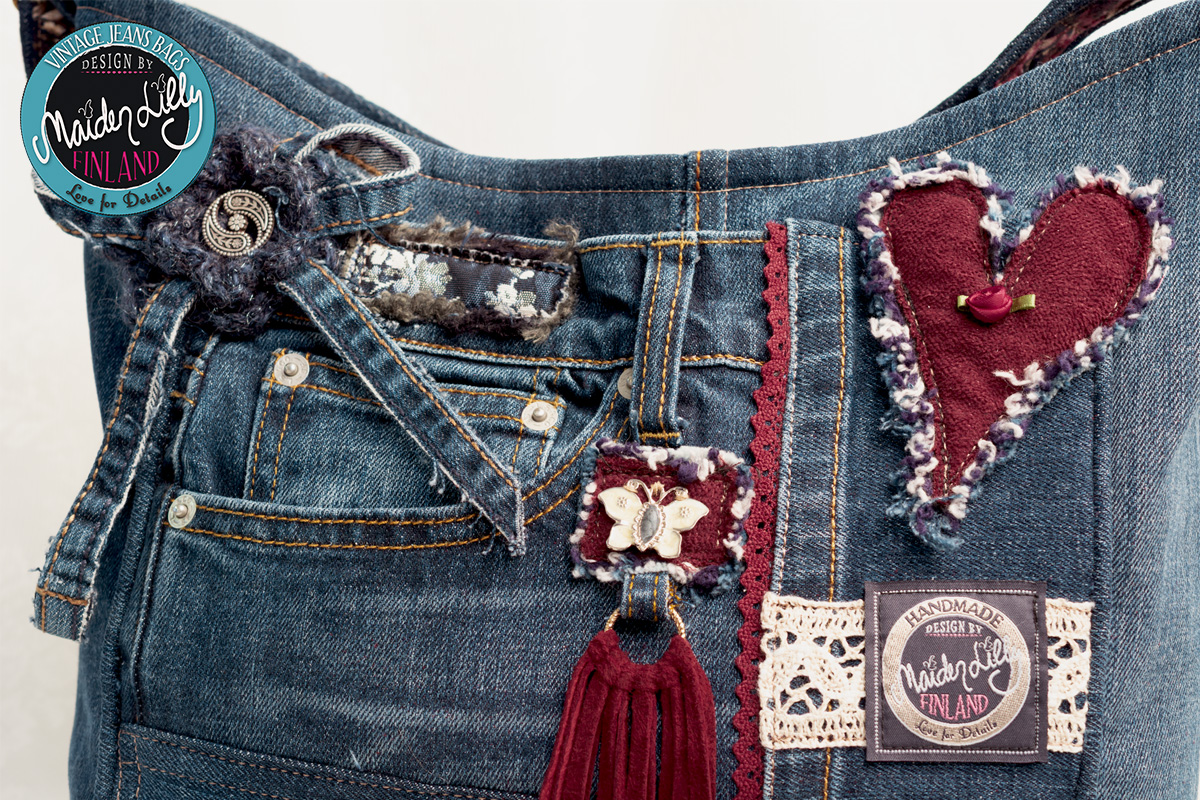 Lilly’s Book Bagia on tällä hetkellä saatavilla ainoastaan tilaustuotteena. Tilaustuotteiden farkun värisävy, yksityiskohdat, somisteet ja tehostevärit  sovitaan asiakkaan kanssa ennen tilausta. Hinta muodostuu valmiin laukun materiaalien ja yksityiskohtien määrästä. Ovh. 130-185 €.