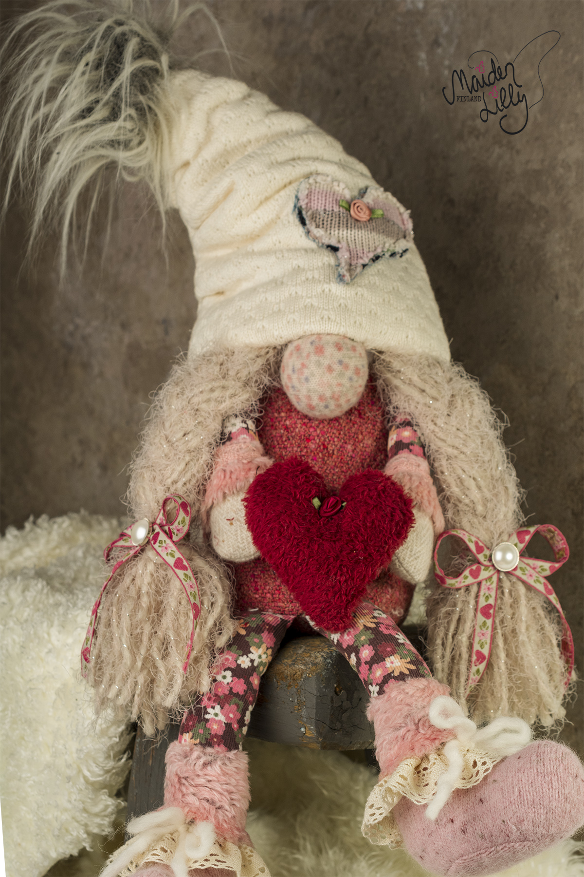 Kodinhaltiat on valmistettu ommellen – ompelukoneilla tarkoitukseen sopivasti, käsinommellen osien kiinnittäminen, asusteet ja viimeistely. Kädentaitajan ammattitaidolla ja tarkkuudella, omalla ateljeella Torniossa. Uniikkia, suomalaista tonttudesignia!